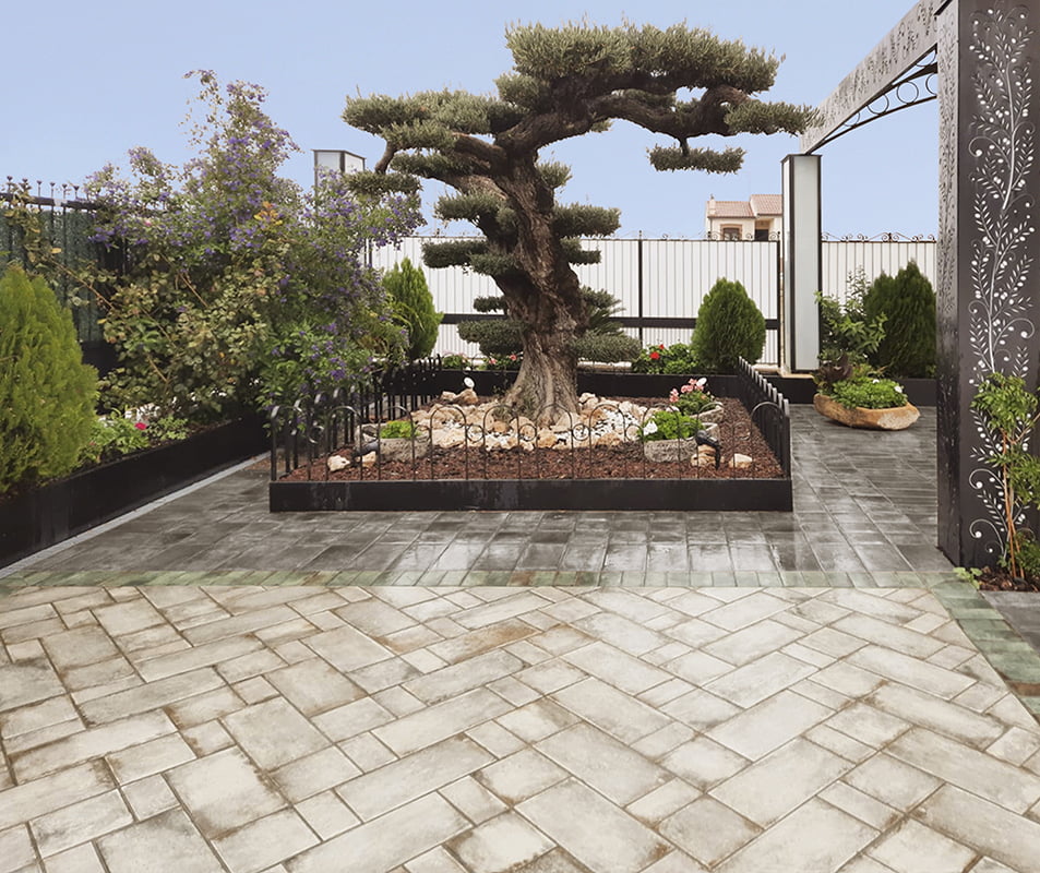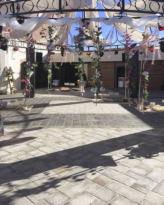 The halls "La Olivina" in Villacarrillo (Jaén) have reformed their exteriors to celebrate all type of events outdoors. A beautiful environment with a highly resistant and non-slip pavement (Class III-R11). The D'Anticatto series, in its Bianco, Muschio, Notte colors and oblique decoration, cover the whole surface with different modular designs to delimit each space.