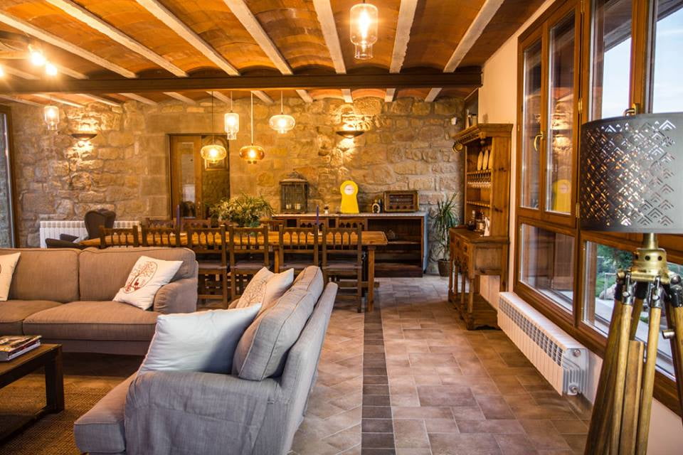 La Ribereta is a cottage located in the North of Segarra shire, neighbouring the Solsonés shire, which was built in the XIX century and renovated in 2015. The property, a totally independent one, is found in the middle of a breathtaking natural landscape, typical from the interior shires in Catalonia. Surrounded by pines, oak trees, holm oak trees, vineyards and other crops; it is an ideal place to enjoy the calm and peacefulness and stop to sense all the colours and smells of the nature.