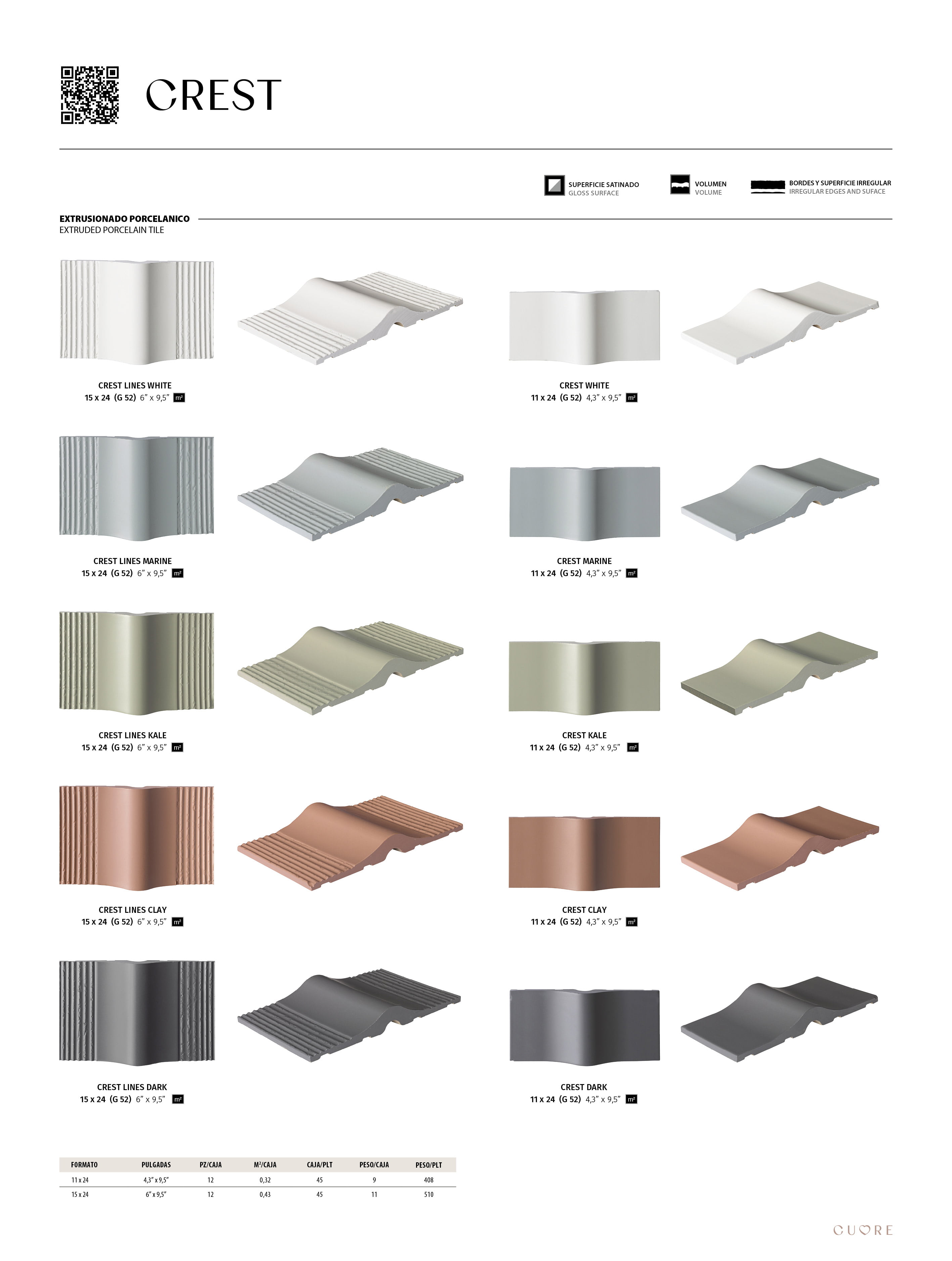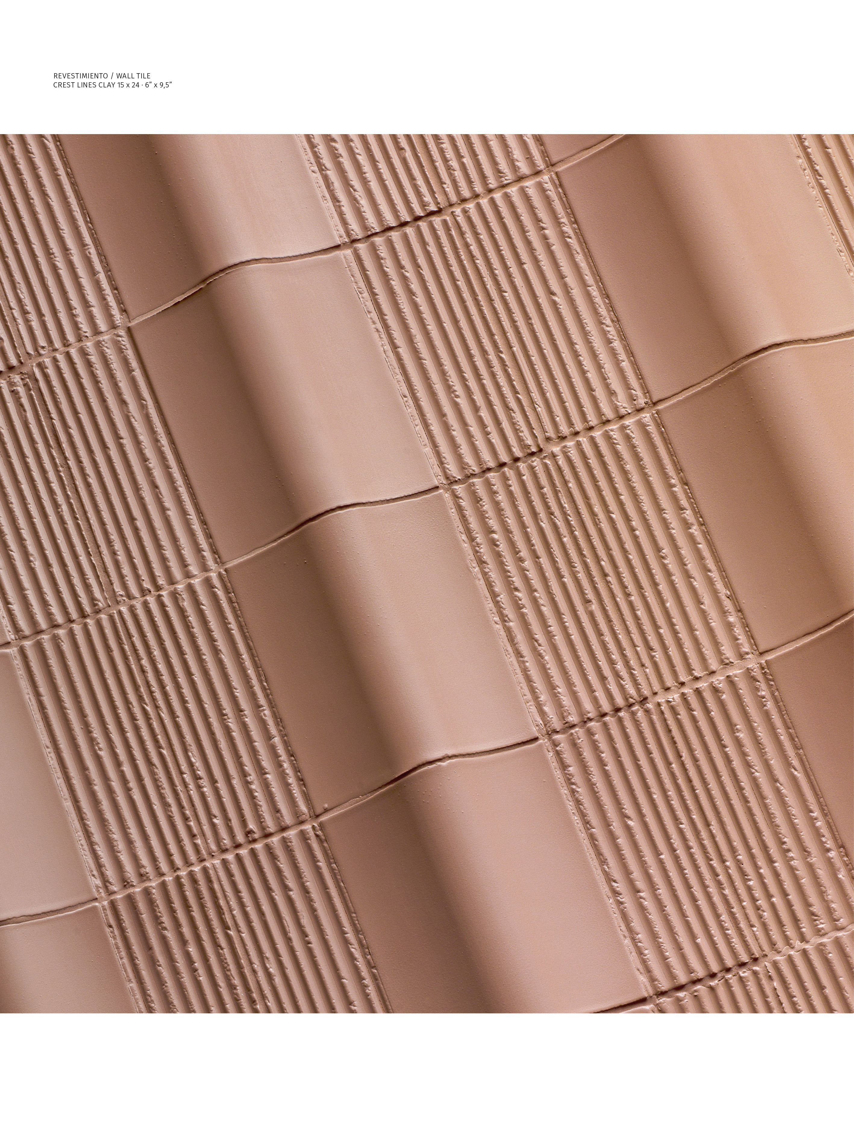 Cada pieza de la colección destaca por su carácter escultórico, con una superficie convexa que otorga movimiento y relieve al revestimiento.