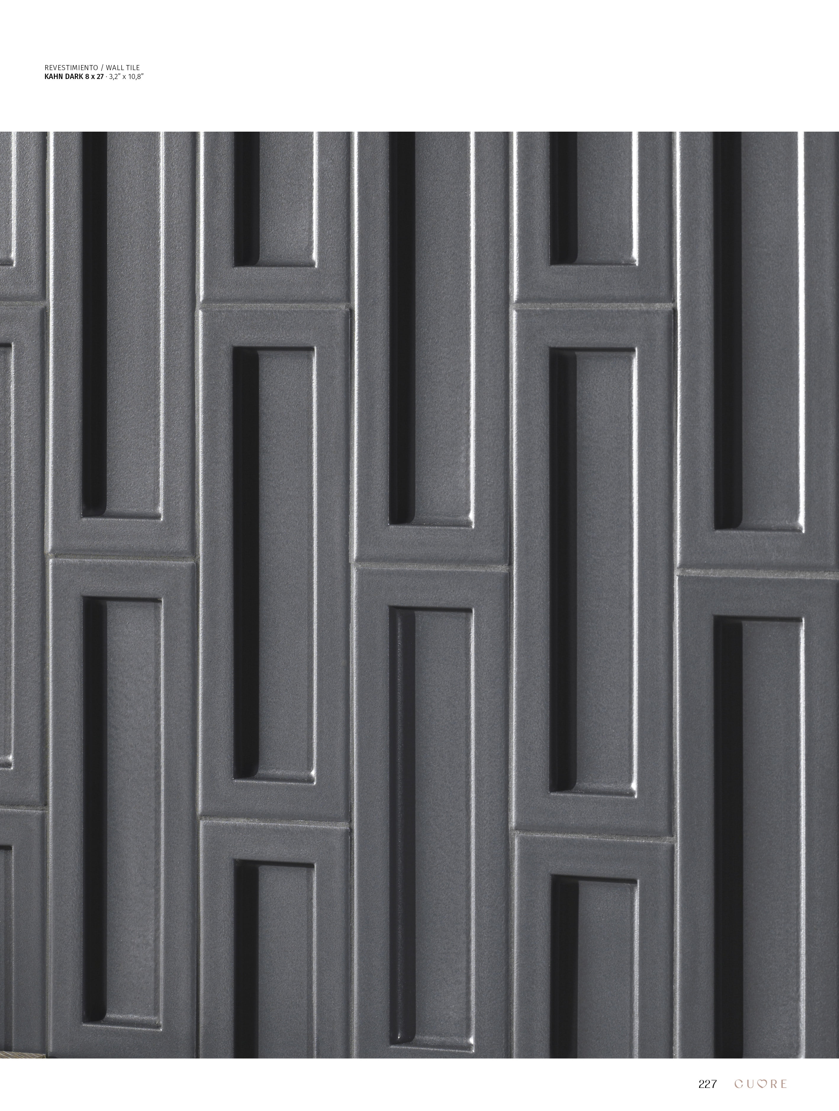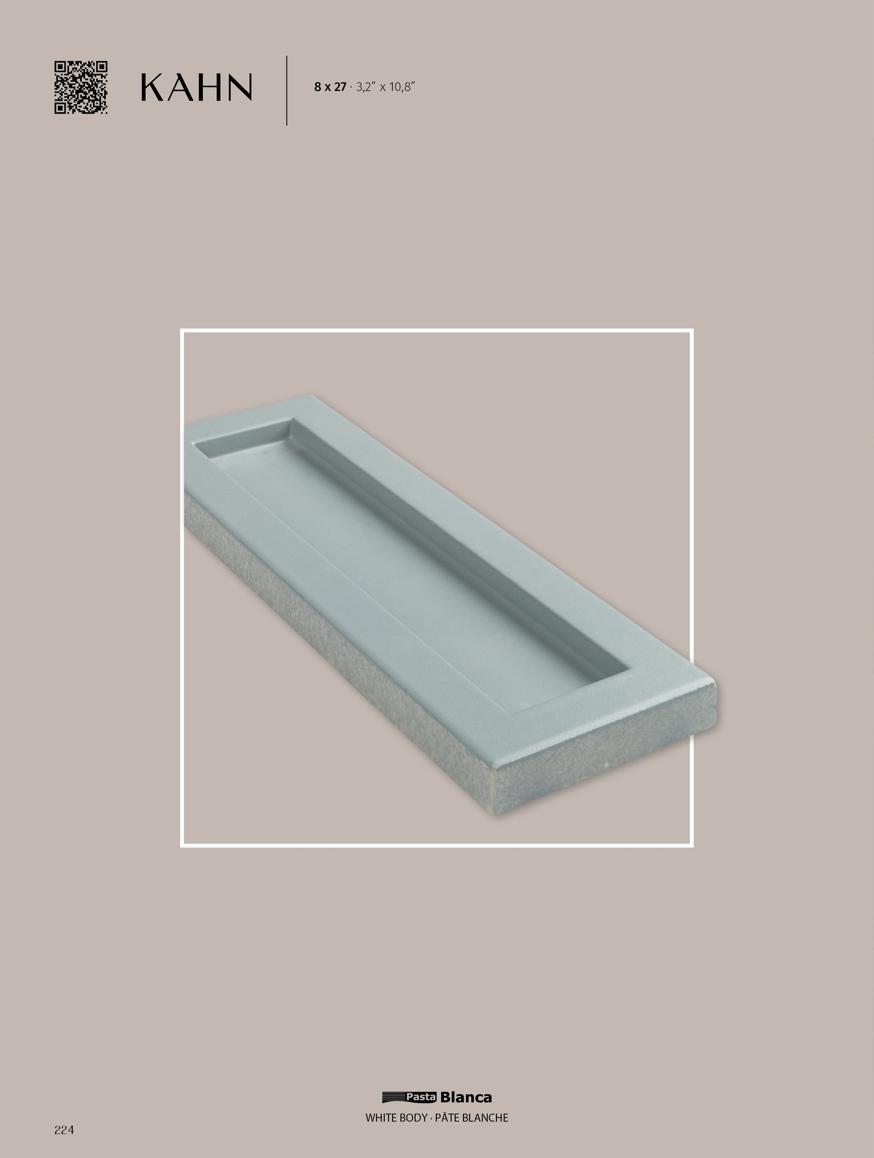 KAHN es una colección que resalta la belleza de la simplicidad a través de su diseño preciso y elegante. En formato 8x27, con una incisión rectangular en el centro, cada pieza crea un juego de luces y sombras que transforma los espacios, añadiendo profundidad y carácter. Kahn no es solo un revestimiento, sino una pieza arquitectónica que invita a una interpretación visual enriquecida, perfecta para quienes buscan diseño y funcionalidad en armonía.