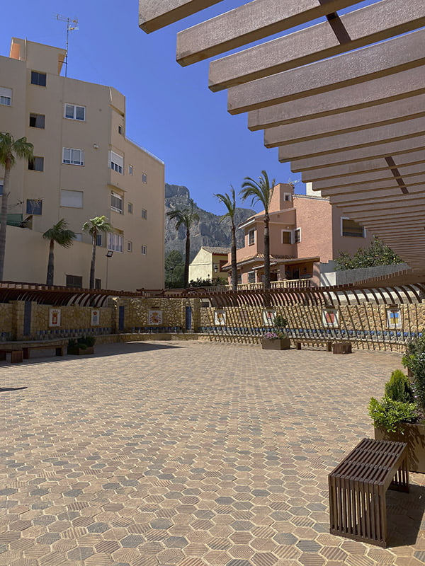 La Plaza de los Chorros en Polop la Marina (Alicante), ha sido rehabilitada recientemente con nuestra serie Tech Land Fibber Natural. Un porcelánico extruido antideslizante clase III con un espesor de 14 mm que soporta un alto rendimiento al tráfico. Su forma hexagonal y su diseño hidráulico inspirado en el cotto crean una combinación excepcional.