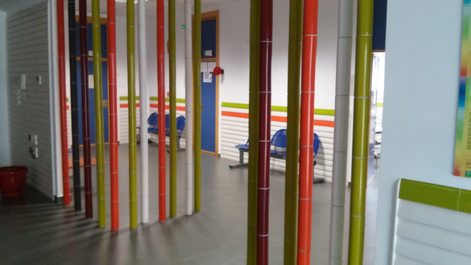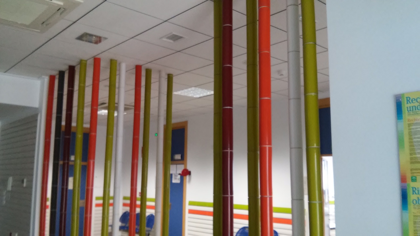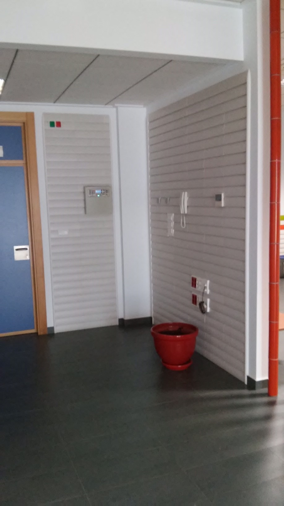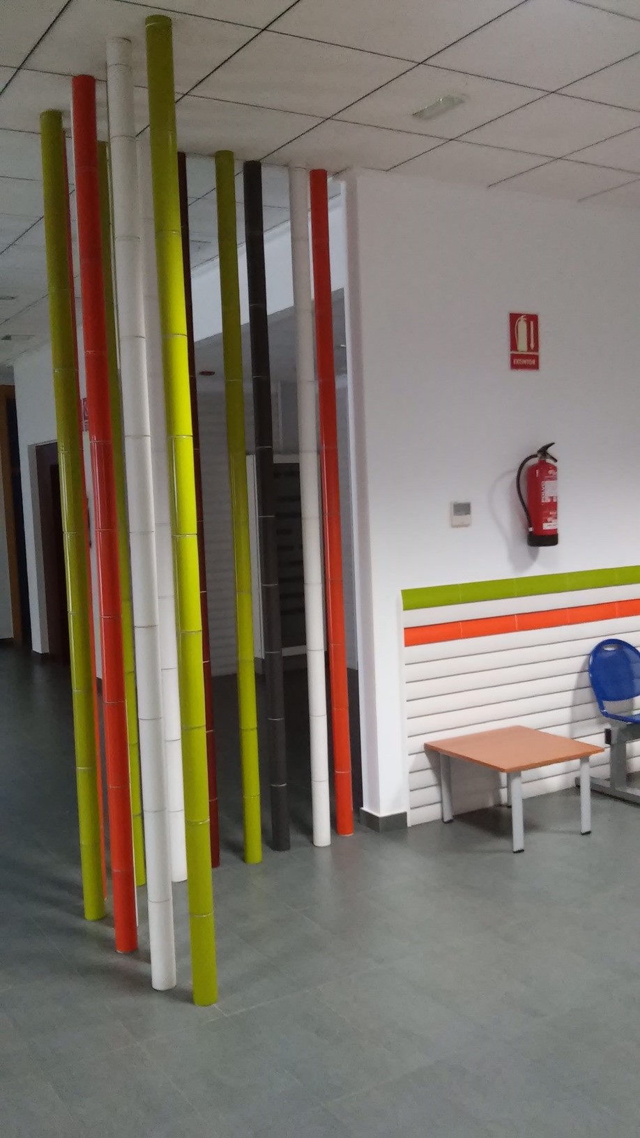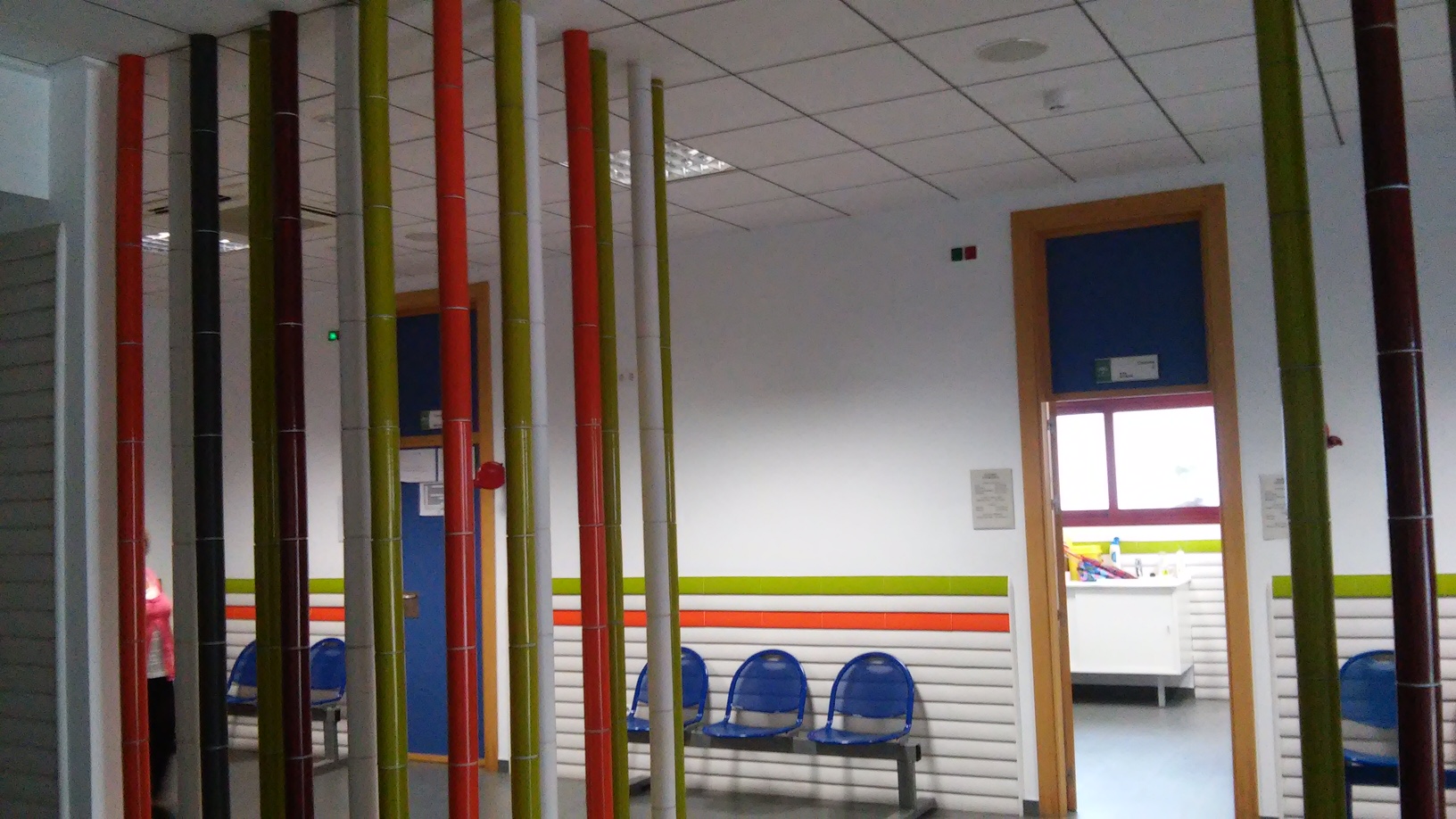 En las salas de espera se han utilizado los materiales de la serie de Life Arq Bamboo combinados con el revestimiento también de la serie Life Arq concretamente la serie Scale aportando un toque moderno y divertido a estas áreas. En algunas consultas también se ha empleado como revestimiento la serie Scale.