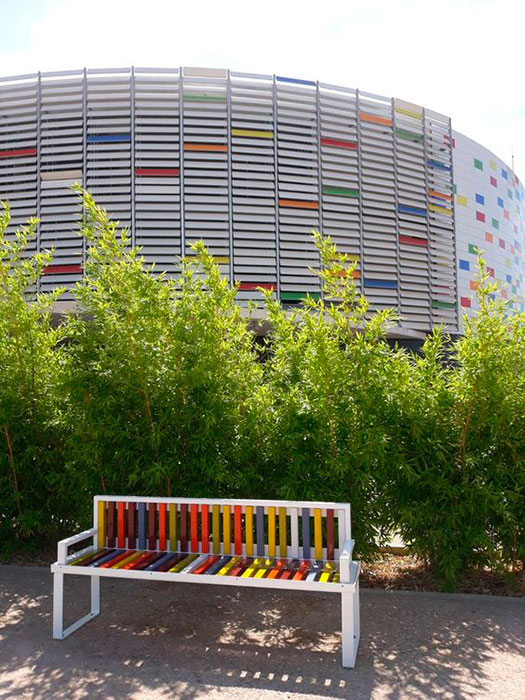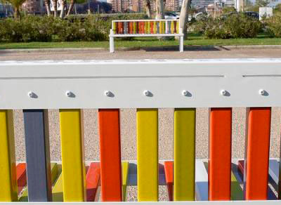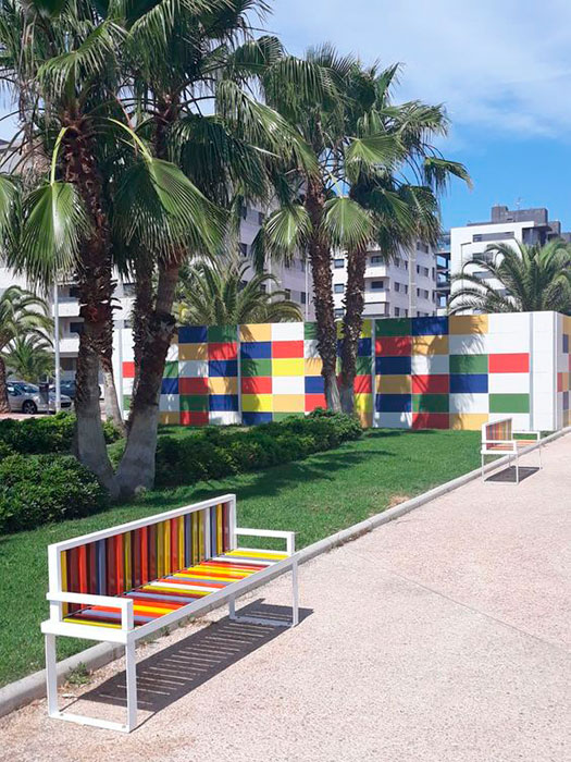 El Ayuntamiento de Castellón ha incorporado seis bancos de cerámica en las inmediaciones del Palau de la Festa. Los bancos instalados en este emplazamiento se corresponden al modelo 'Minimal', desarrollados en una composición de piezas cerámicas en diferentes colores, junto a una estructura metálica en blanco. La gama cromática del modelo elegido va en concordancia con el diseño de la fachada del Palau, también realizada con cerámica. El fácil mantenimiento y la elevada resistencia hacen de este producto la elección óptima para renovar el mobiliario urbano. Esta actuación se enmarca dentro de la apuesta del Ayuntamiento de Castellón por promover la cerámica en los espacios urbanos, apostar por su calidad y reivindicar su versatilidad