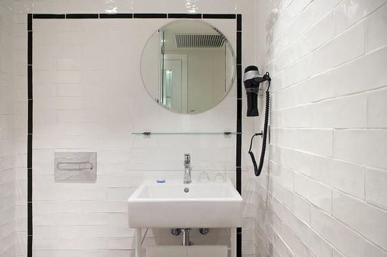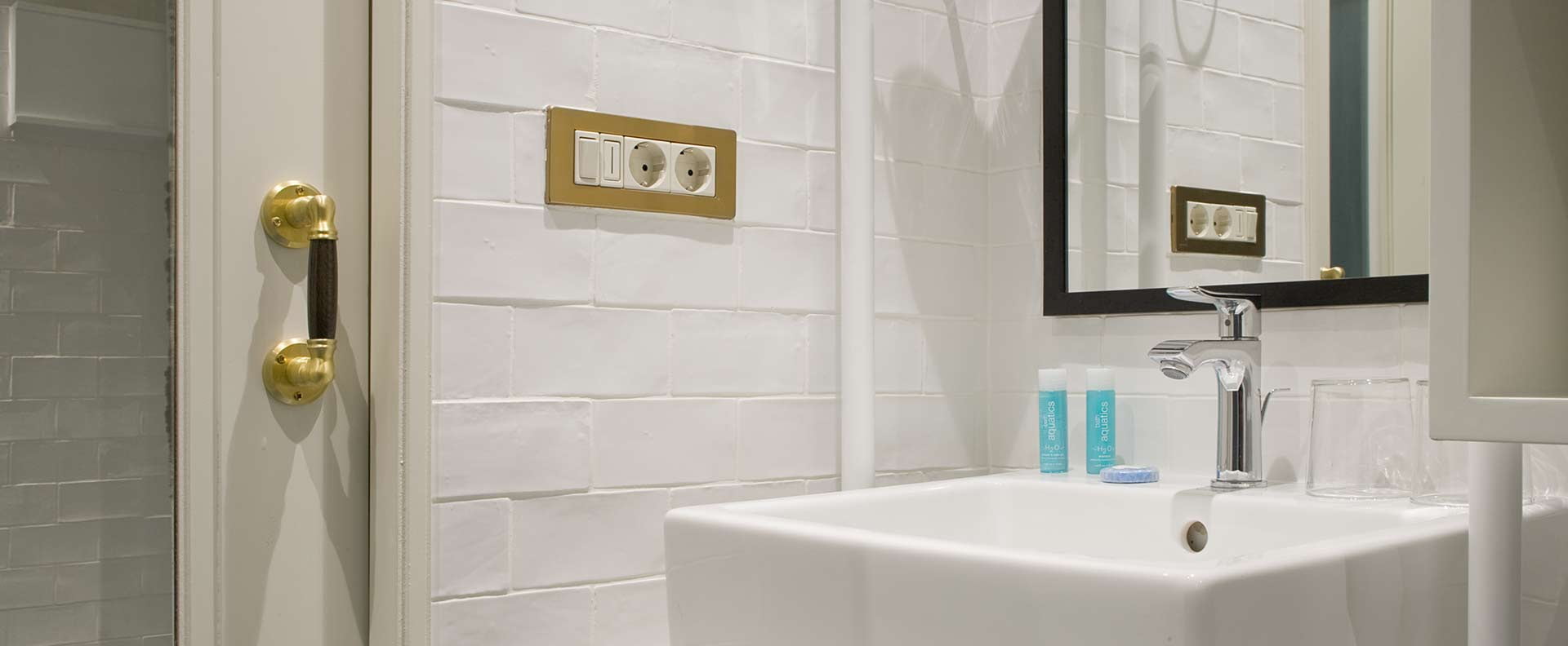 El proyecto personalizado y diseñado por el estudio Lázaro Rosa-Violán permite que las habitaciones presenten líneas limpias y esenciales gracias al producto de Natucer (Cotswold de 7,5x30) suministrado por el cliente Comercial Ceramista Gaya de Barcelona, que ayuda a mantener la estética de las habitaciones cuya paleta de colores se compone de blancos y negros, consiguiendo baños únicos.