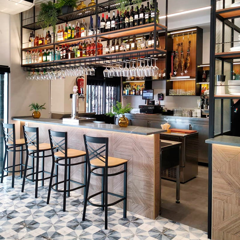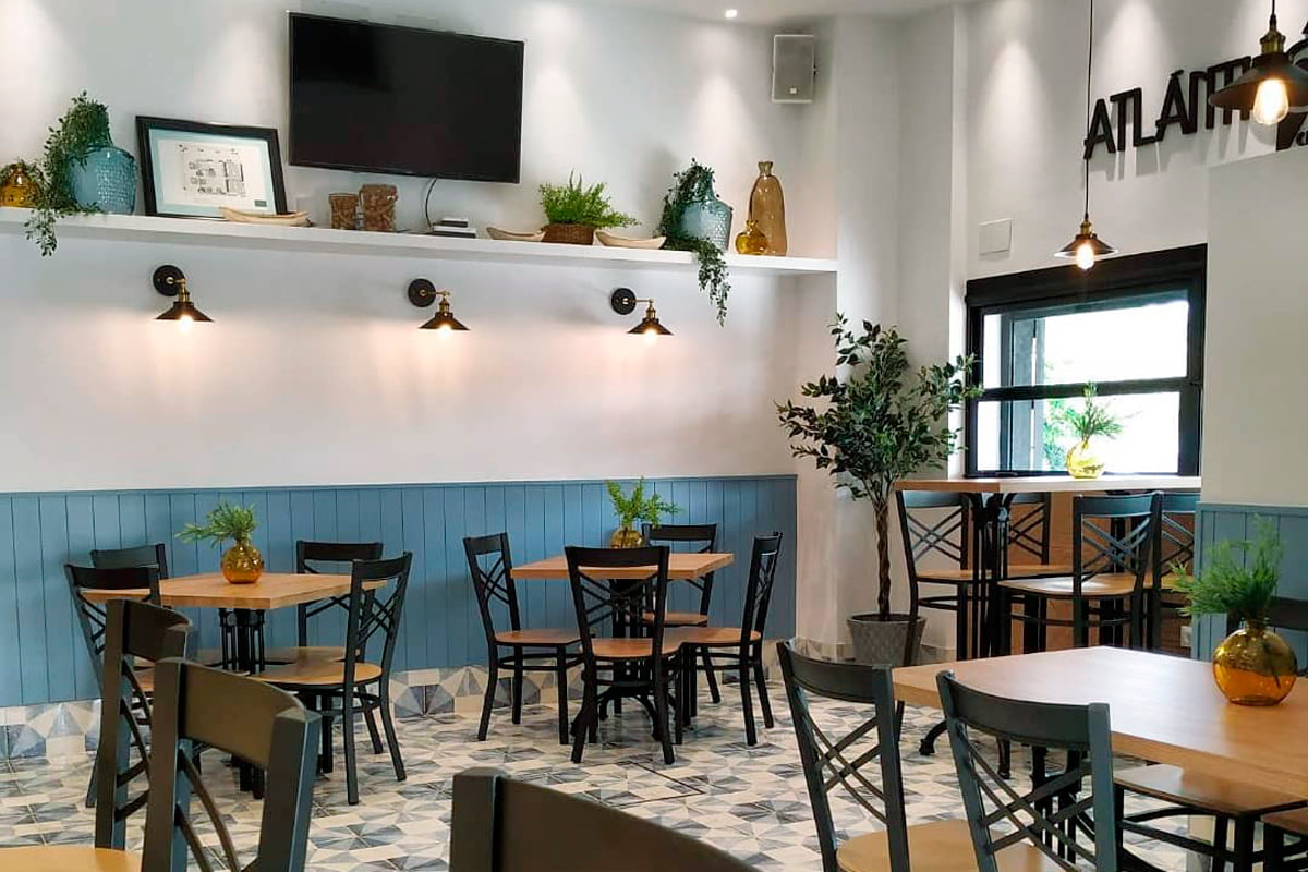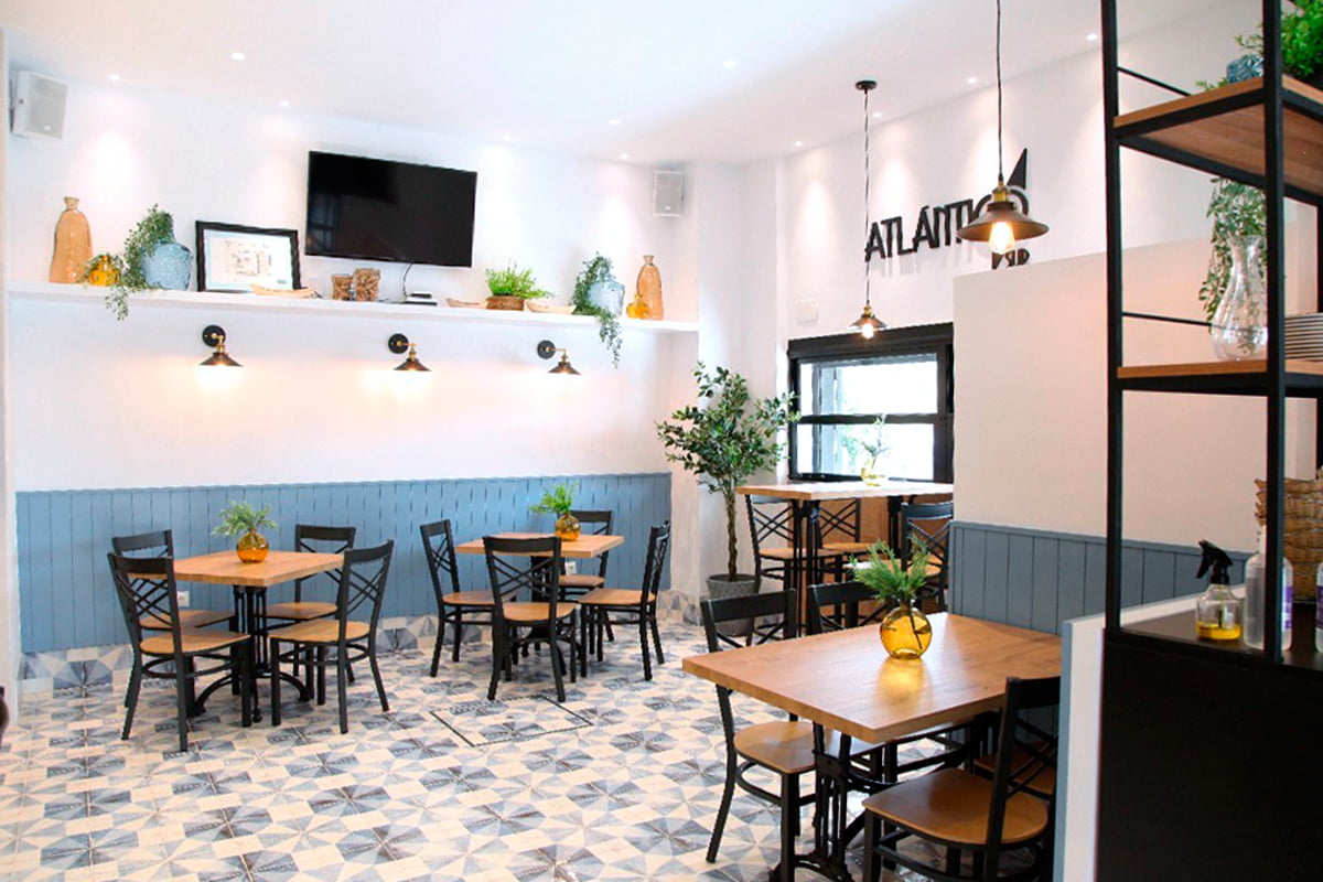 Reforma para el restaurante Atlántico Sur de Sevilla con el pavimento Tempo Tangram Atlantic 22,5x22,5. Con esta serie se ha conseguido un ambiente mucho más actual y acogedor. El acabado destonificado de estas piezas hidráulicas crea un cálido aspecto natural. La interiorista Marta Aracil ha sido la encargada de llevar a cabo este proyecto.