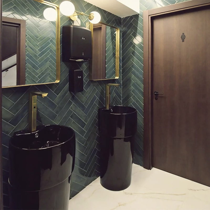 Reforma de uno de los baños del @restaurantegredosplasencia en Cáceres, realizada con la colección Capri Oliva, un porcelánico extruido destonificado apto para pavimento y para revestimento que dependiendo la forma de colocación obtendremos un estilo de decoración u otro. En este caso, el resultado ha sido un baño sofisticado que mantiene un ambiente natural.