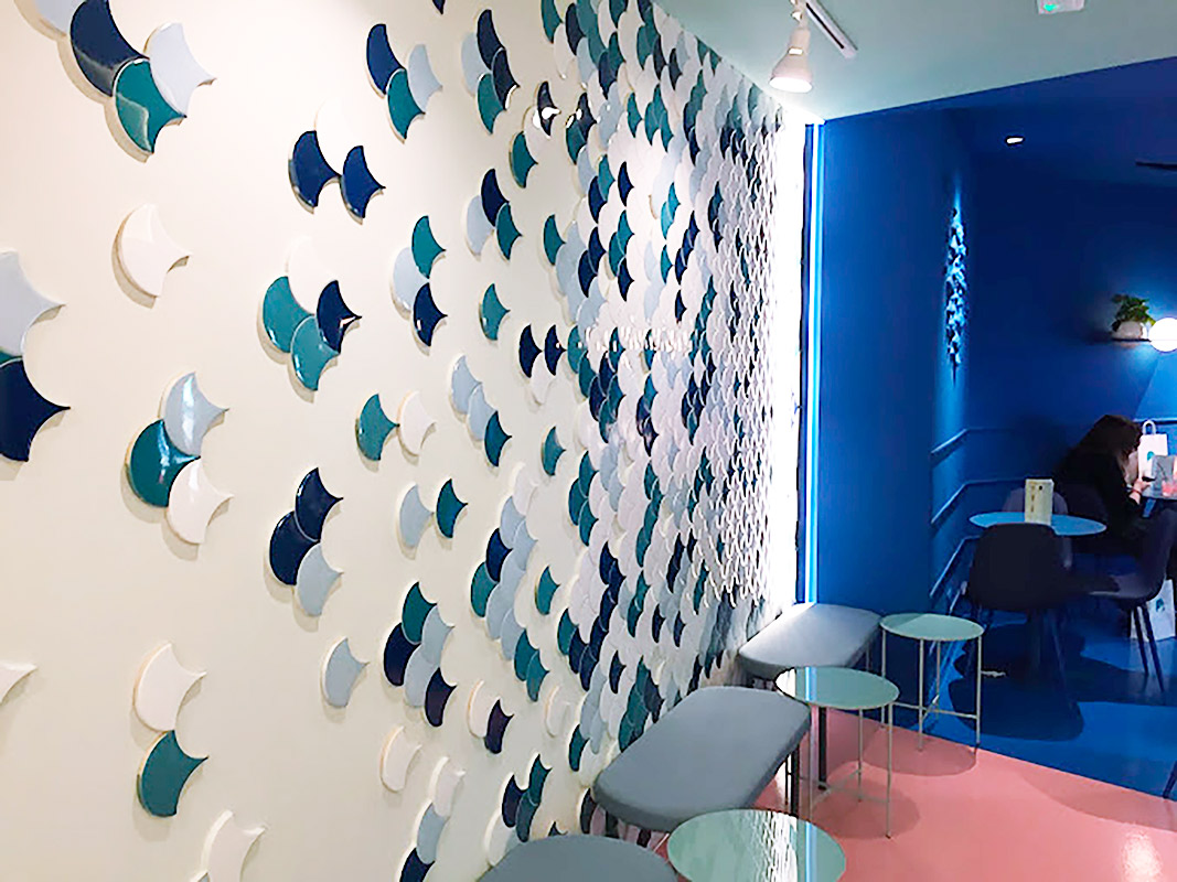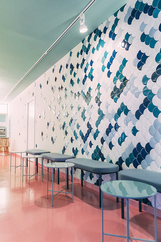 La Pecera, una reconocida heladería, ha confiado en la serie Squama para su establecimiento en Madrid. Squama es una propuesta muy sorprendente que destaca y encaja perfectamente con la heladería por su curiosa y única forma de escama, la cual cuenta son superficie brillo y colores que, combinados, son perfectos para crear un ambiente envolvente y agradable.