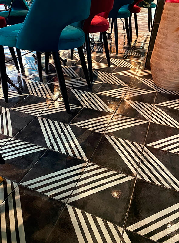 Descubre el encanto renovado del restaurante mallorquín Opera Maritim (@operamaritim) con una elegante elección para el suelo: la colección TEMPO en color CAVIAR, decorada con ROADS y diseñada por Rafael Adrover. Este porcelánico extruido, inspirado en los clásicos diseños hidráulicos y suministrado por Almacenes Femenias (@almacenes_femenias), ha sido la elección perfecta para el pavimento del restaurante. Tempo no solo destaca por su durabilidad y resistencia, sino también por su versatilidad para generar patrones geométricos según la creatividad de la colocación. Esto crea un ambiente acogedor y contemporáneo con un toque distintivo y sofisticado.