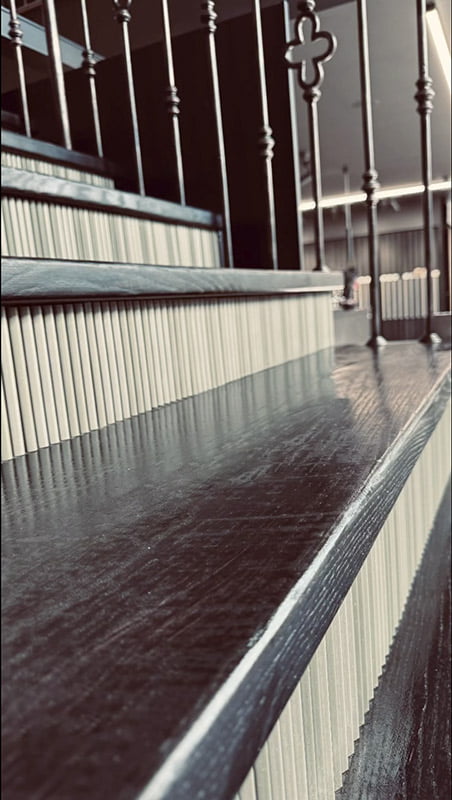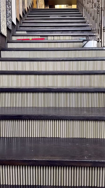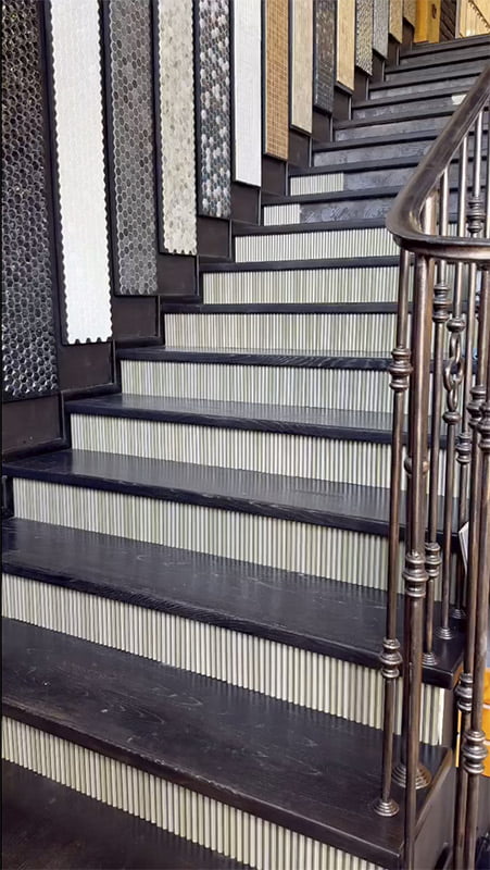 Espectacular reforma del showroom de @plitka.md realizada con la colección My V Deluxe en color Kale para crear unas escaleras elegantes y sofisticadas, con un diseño único que aporta un toque minimalista y Art Deco. Este porcelánico extruido rectificado, de acabado mate y brillo y formato 10x39cm, destaca por sus suaves surcos y formas volumétricas, permitiendo un ensamblaje sin juntas. En la contrahuella de cada escalón, la colección My V Deluxe añade un toque distintivo y elegante. Eleva tus espacios con la elegancia y la distinción presentes en My V Deluxe.