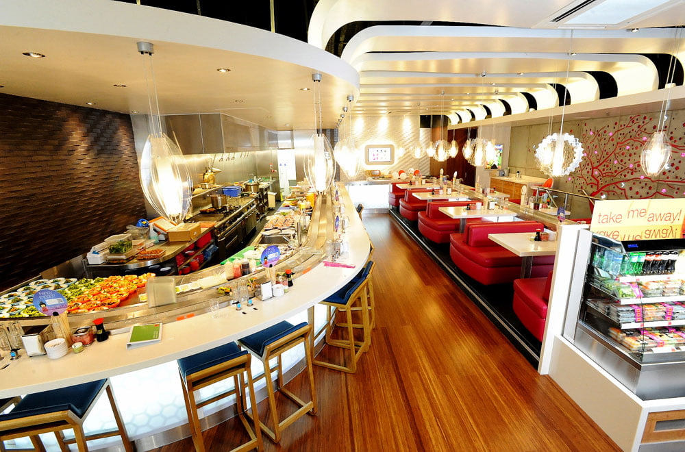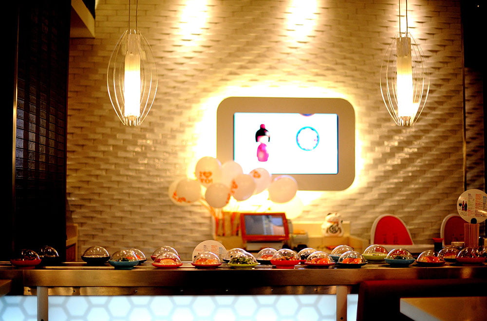 La cadena inglesa, “Yo Sushi” ha confiado la apariencia de su restaurante de Exeter a la empresa Natucer. En este caso, se han revestido las paredes de este local con la colección Convex, la cual, gracias a su geometría y volumen, crea un efecto de luces y sombras que, sumado al contraste de los colores elegidos, crea un ambiente único.