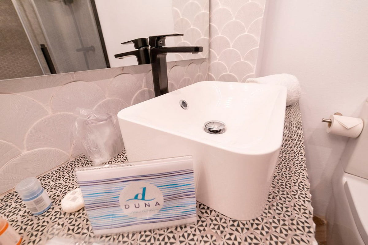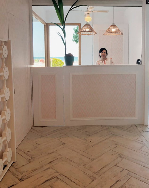 El estudio de interiorismo & Concept Villa Juana, situado en Benicasim ha trabajado en la reforma de este hotel. Natucer ha colaborado en el proyectos siendo el encargado de suministrar el pavimento porcelánico efecto madera de la serie Retro con sus diferentes formatos, para las zonas comunes del hotel como son la recepción, escaleras y pasillos. Para revestir las paredes de los cuartos de baño se confiado en las distintivas escamas de la serie Art.
