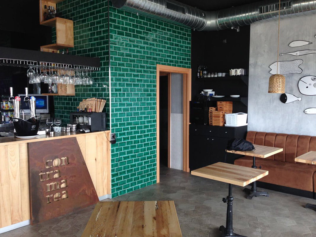 El gastrobar Contramarea es un restaurante de aires mediterráneos lleno de frescura que se encuentra en Isla Cristina (Huelva) que ha contado con material de Natucer para realizar la reforma de su local. El proyecto de decoración ha sido llevado a cabo por la empresa Bañ&arte, que le ha dado un aire muy marinero y confortable a todo el local, en sintonía tanto con el menú como con la ciudad marítima que lo acoge, por ello han contado con la serie Novecento, pieza cerámica hecha a mano, para la zona de la barra o incluso formando parte de la fachada del local.