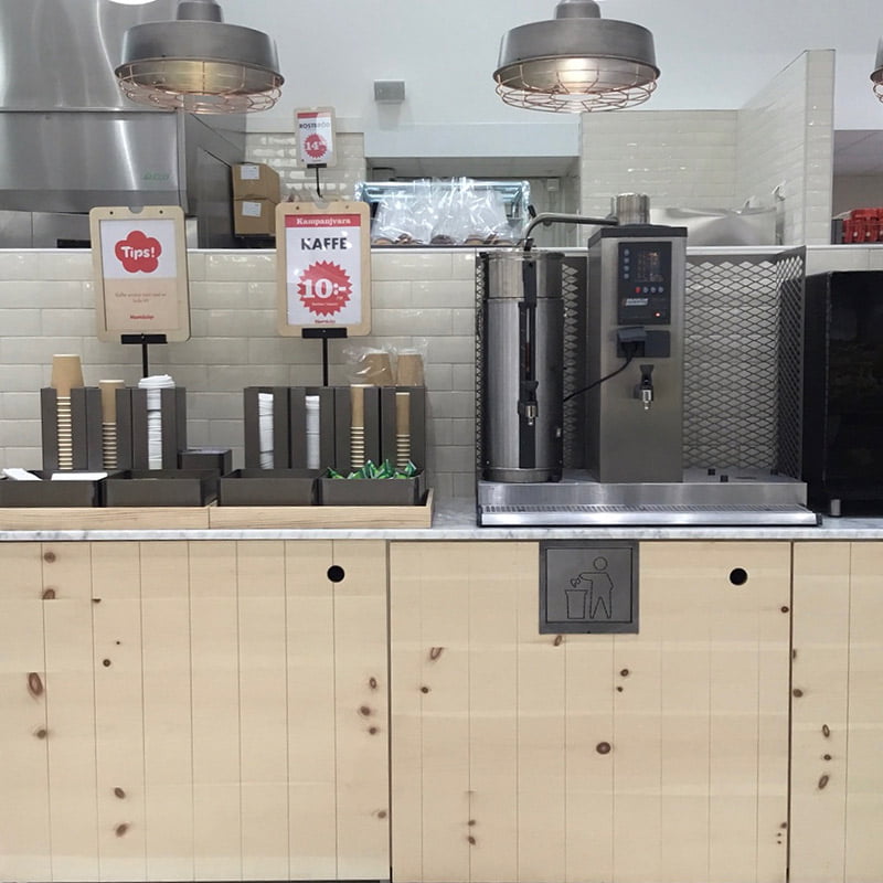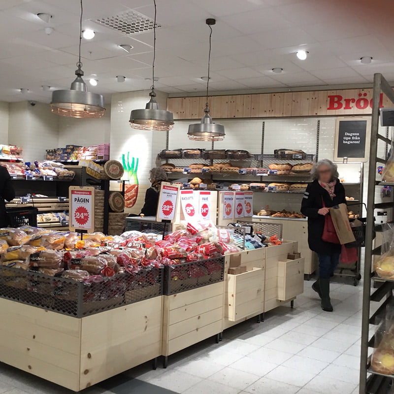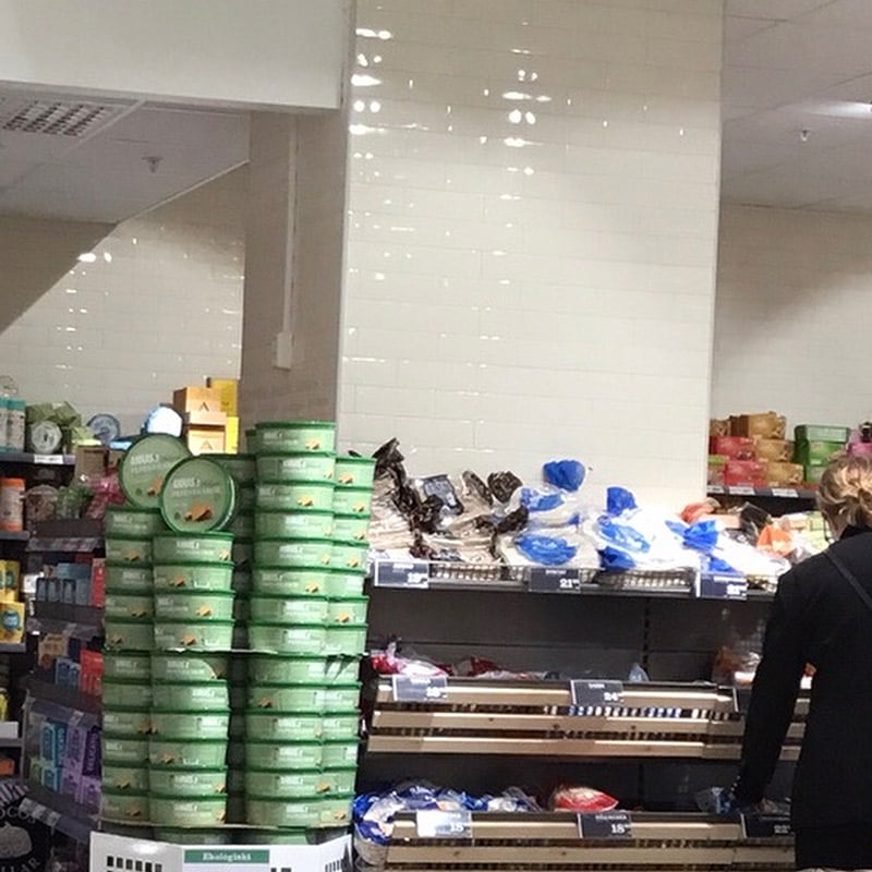 La cadena de alimentación Hemköp situada en Estocolmo, ha revestido las paredes de su local con la colección London de Natucer con el formato 7x22 en color Bone.