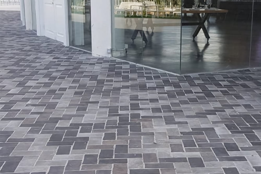 La zona exterior del complejo ha sido equipada con la serie Tech Geo con el formato 11x22,5 y un mix de los colores disponibles en la colección, otorgando una gran fuerza a todo el restaurante gracias a este modelo de cerámica inspirada en piedra. El proyecto lo ha realizado nuestro cliente Topolski.